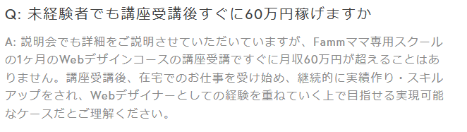 Fammに限らず、どのスクールでも最初から大きな収入を得るのは難しいため、「コツコツと実績を積み上げる意識」を持つことが大事です。