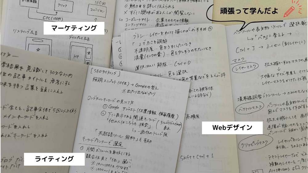 ライティングスキルだけでなくWebスキルを全体的に学んだので、このサイトの構築やデザイン(外観やアイキャッチ画像)もすべて自分でやっています!